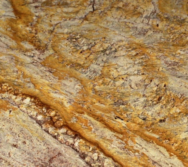Typhoon Bordeaux é um granito extraído no Brasil, com grandes veios nos tons creme e castanho com detalhes marrons e âmbar.